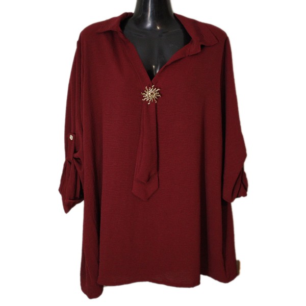 Μπλουζοπουκάμισο με γραβάτα, διακοσμημένη με καρφίτσα, γιακά και μανίκι που μαζεύεται, σε εβαζέ γραμμή, από σταθερό κρεπ βουάλ ύφασμα.