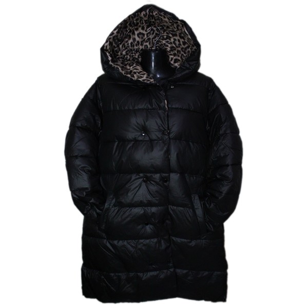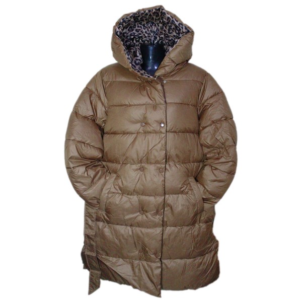 Μπουφάν διπλής όψεως, μονόχρωμο από τη μία πλευρά και λεοπάρ από την άλλη, με τσέπες στα πλάγια, ζώνη από το ίδιο ύφασμα, ενσωματωμένη κουκούλα, κλείσιμο με φερμουάρ και τρουξ.