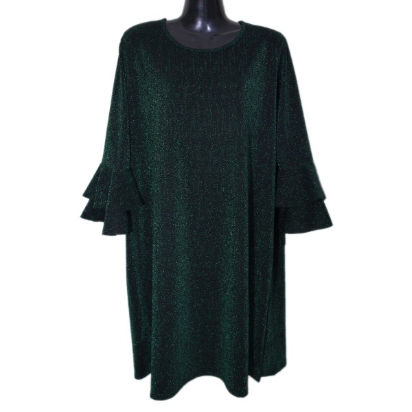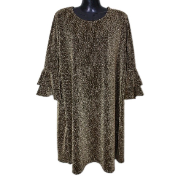 Φόρεμα λούρεξ με βολάν στο μανίκι σε ίσια γραμμή, από ελαστικό ύφασμα.