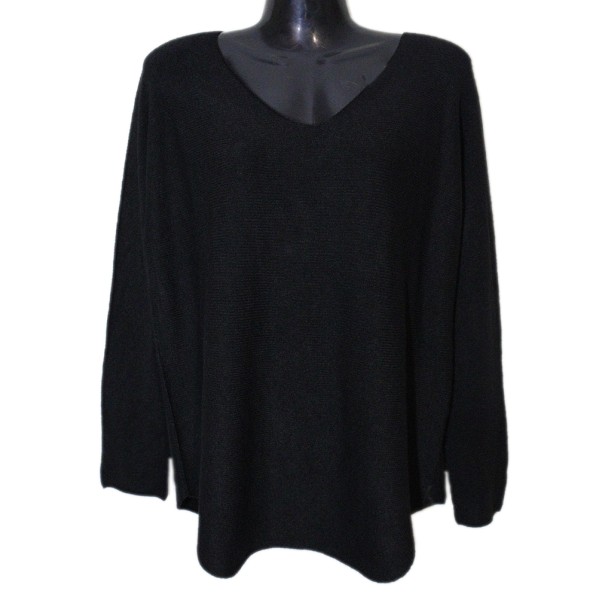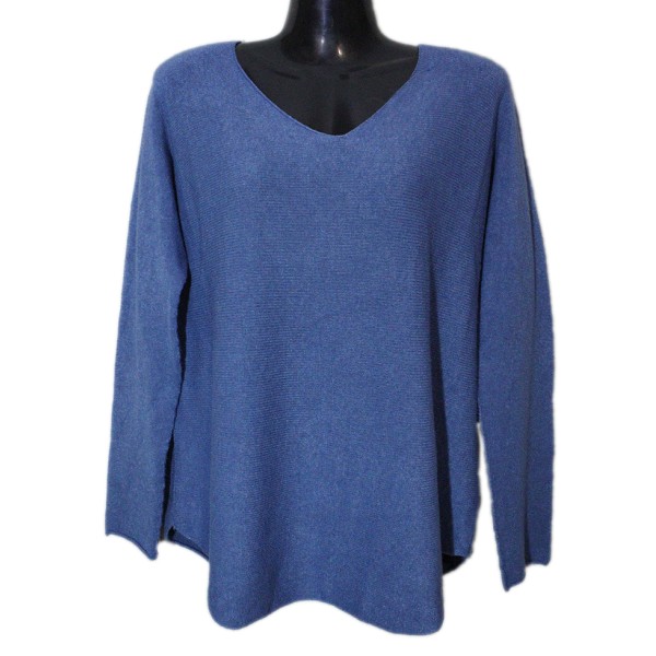 Λεπτή πλεκτή μπλούζα με V, συνεχόμενο μανίκι και στρογγυλάδα στο τελείωμα.