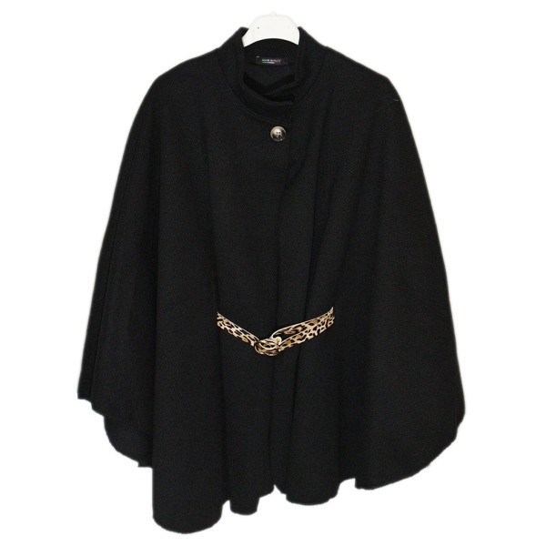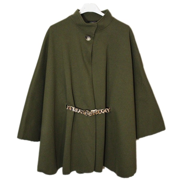 Πανωφόρι τύπου κάπα με animal ζώνη και κλείσιμο με κουμπί στον λαιμό, από ύφασμα τσόχας κομμένο σε στρογγυλάδα σχηματίζοντας καμπάνα στο μανίκι.