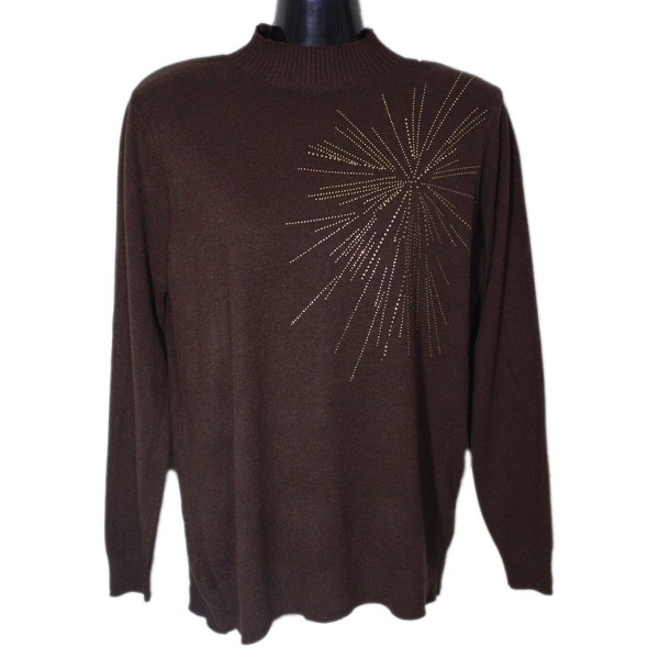 Πλεκτό μπλούζα ημιζιβάγκο με διακόσμηση στρας αριστερά στο στήθος, από λεπτό πλεκτό ύφασμα μηχανής.