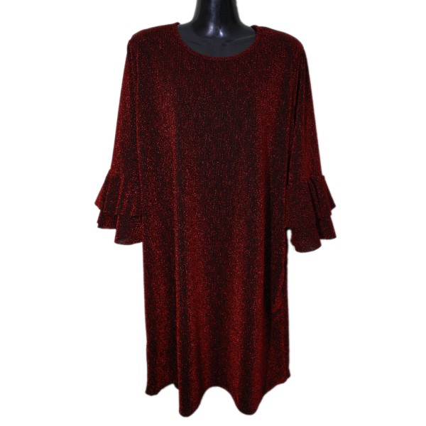 Φόρεμα λούρεξ με βολάν στο μανίκι σε ίσια γραμμή, από ελαστικό ύφασμα.