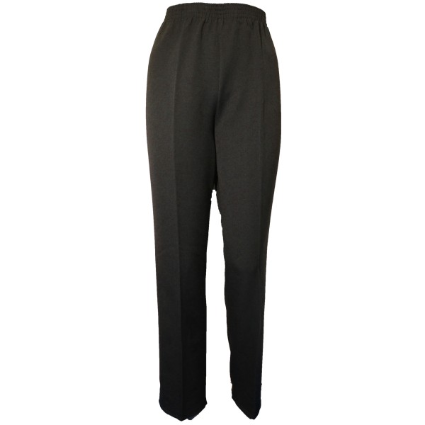 Κλασσικό παντελόνι σε ίσια γραμμή με λάστιχο στη μέση και σταθερό viscose ύφασμα . Ιδανικό για γυναίκες με καμπύλες σε τέσσερις αποχρώσεις : Μαύρο , γκρι , σκούρο μπλε , σκούρο καφέ .
